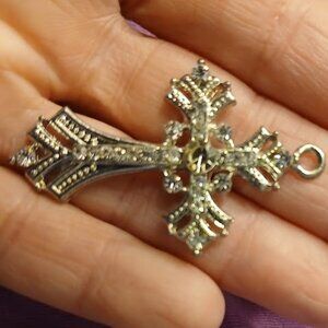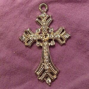 New SILVER RHINESTONE CROSS Pendant Western Southwestern Cowgirl Rodeo Farmhouse