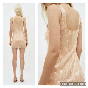 New SIMKHAI | Pallas Lily Peach Orange Beaded Tassel Fringe Mini Dress New NWT 0