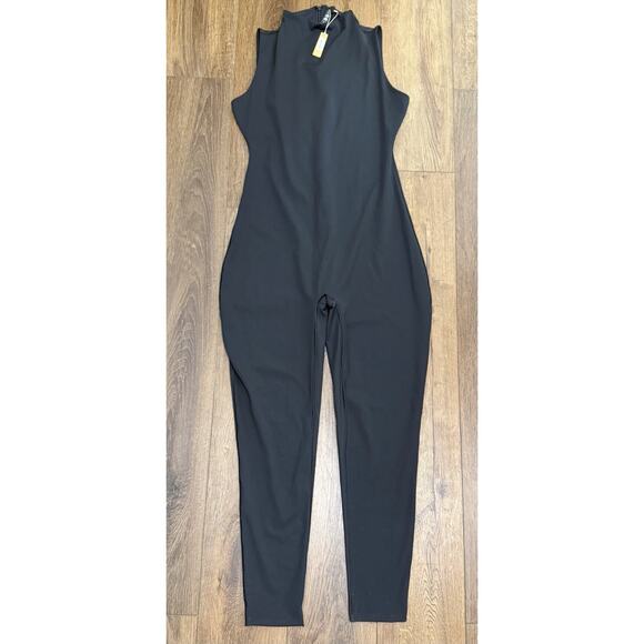 New SKIMS All-In-One Mock Neck Sleeveless Jumpsuit Romper One Pc Black Onyx XL