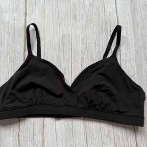 The new SKIMS Bralette Top in Berry is a romantic and cozy addition to any lingerie collection. Made from Spandex and Polyamide with a satin fabric type, this wireless bralette features wide straps, a square neckline, and a pullover closure for easy wear. With a stretchy material and machine washable care, this XS size top is perfect for those looking for a cute and sexy bralette with a touch of celebrity style.