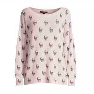 New! SKULLS CASHMERE Brand Boatneck Ethereal Skull Sweater! XS/S Cream Purple