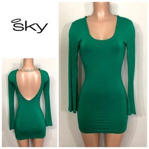 New. SKY long sleeve embellished Kelly green dress. RUNS SMALL. Normally $200