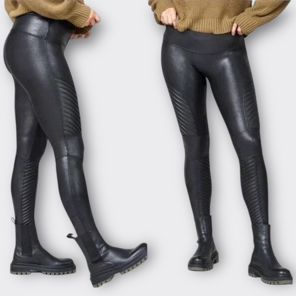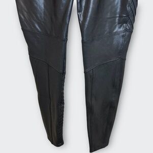 New SPANX Faux Leather Moto Leggings Black L | Edgy Biker Streetwear Athleisure