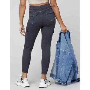 New! SPANX Washed Black Stretch Twill Ankle Cargo Pants, XS