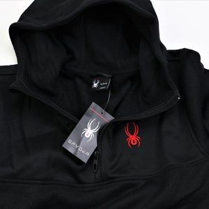 New SPYDER Ray Half Zip Waffle Knit Pullover Hoodie Men's Size Small Black Color