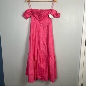 New STAUD Elio Off-shoulder Dress in Cotton Poplin size 00 in Plumeria