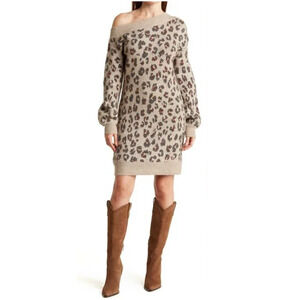 New ~ STEVE MADDEN ~ Animal Print Off-The-Shoulder Sweater Dress Size L