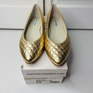 New STEVE MADDEN The Hot Gold Leather Quilted Flats Size 9