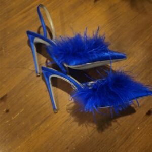 New STEVE MADDEN Woman's Shoes Back Sling SATIN FEATHERS Stiletto Heel Sz 8.5