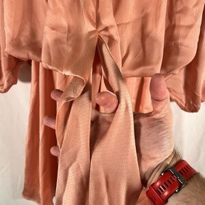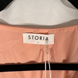 New STORIA Mini Dress Women's Large Pink Vneck Tie Elastic Waist Short Sleeve