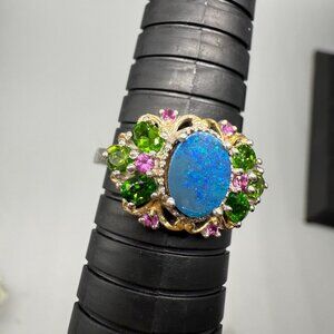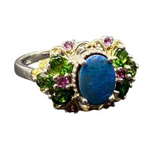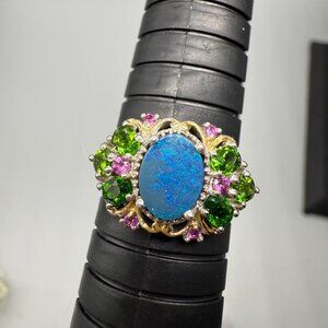 New STS 925 Sterling Silver Rhinestone Emerald Garnet Opal Cocktail Ring Size 10