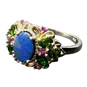 925 Sterling Silver Rhinestone Emerald Garnet Opal Cocktail Ring
