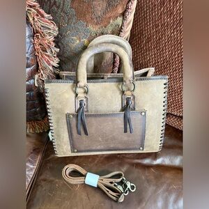 New! STS Cowhide Chaps Leather Removable Crossbody Satchel Purse Bag