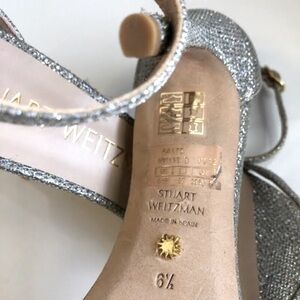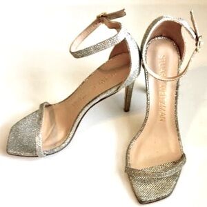 New STUART WEITZMAN Nudistsong Silver Glitter Stiletto Sandal 8.5 MSRP $495