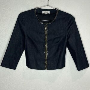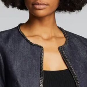 New SUSAN BENDER Denim Cropped Cardigan Jacket w/ Chain Size 4