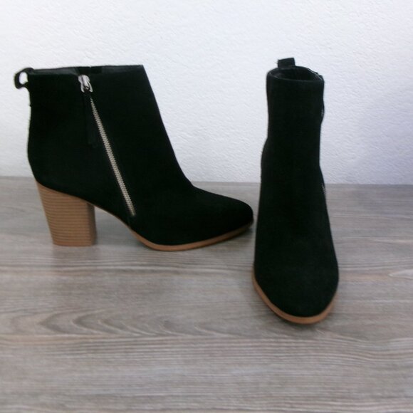 New SUSINA Black Genuine Suede Leather Boots Booties 10 High Heel Side Zipper