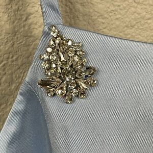 New Sachin & Babi Pryce Crystal Strap Detail Vertical Stretch Mikado Column Gown