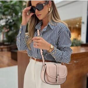 New Saddle Crossbody Bag Dusty Pink Vegan Leather 7" H x 3" W x 9" L