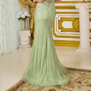 New Sage Rhinestones Embellished Maxi Graduation Gown w/ Round Neck GL3703