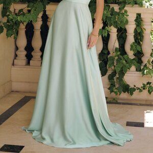 New Sage Soft Satin Bridesmaid Dress w/ Draped Cowl Neck & Open Back CD T714