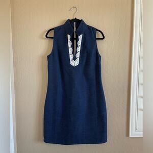 New Sail to Sable Navy Tweed Lace Shift Dress