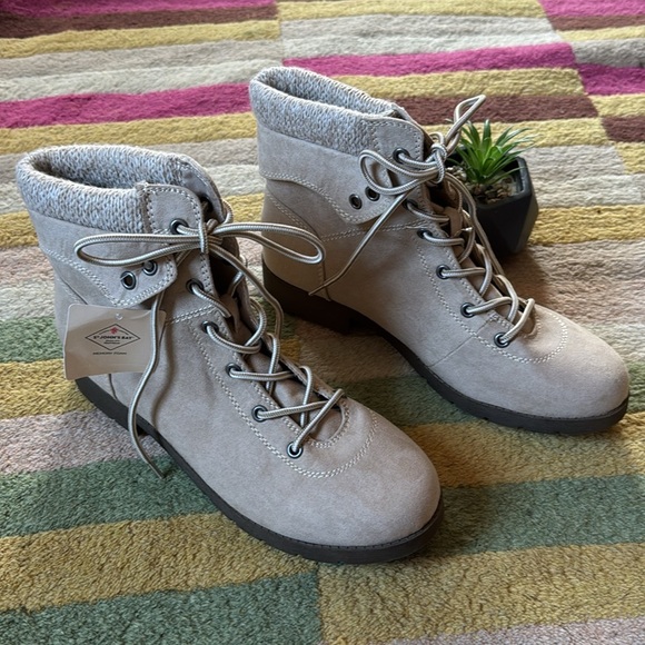 New Saint John’s Bay Yumma Sand Cream Lace Up Boots Memory Foam I Size 9.5