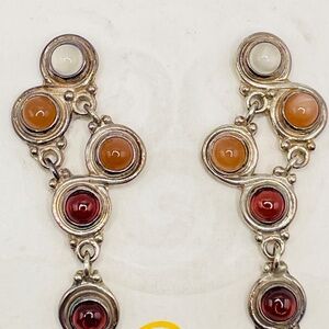 Sajen 925 sterling new old stock gemstone pierced post earrings on original card. Both earrings are stamped Sajen 925. Multi color stones. See photos for size.