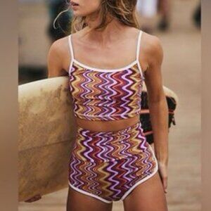 New Salt Gypsy x Free People Betty Wavy Crop Tank High Waist Surf Boy Shorts