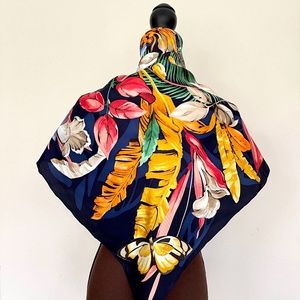Authentic Salvatore Ferragamo Butterfly in Flower Garden Silk Scarf