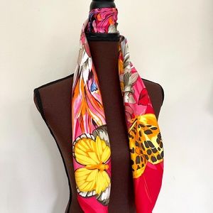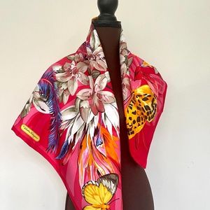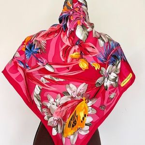 Authentic Salvatore Ferragamo Butterfly in Flower Garden Silk Scarf