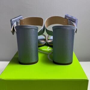 New Sam Edelman Dalton Blue Satin Slip On Block Heel Sandals Women's Size 10