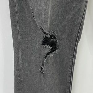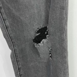 Styles Faded Black Jeans Gray Jeans Grey Denim Distressed Details Distressing Ripped Rips Torn Shredded High Waist Classic Silhouette Versatile Styling Options Casual Outfits Going Out Edgy Grunge Size 10