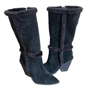 New Sam Edelman Ilsa Suede Shearling Lined Boot Black size 7.5