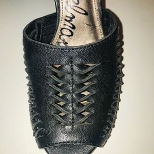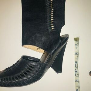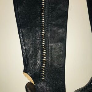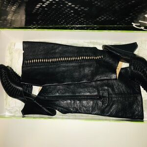 New Sam Edelman Kamie Black Vachetta Black Leather Open Toe Knee High Boots Y2K