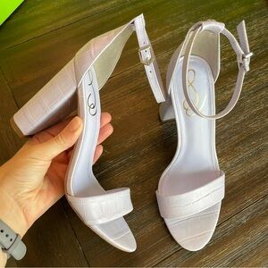 New Sam Edelman Leather Yaro Ankle Strap Block Heel Sandals in Misty Lilac