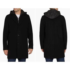New Sam Edelman Men's Size XL Single Breasted Wool Blend Hooded Coat *Defect*
