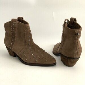 New Sam Edelman Suede Studded Point-toe Bootie Taupe 7.5