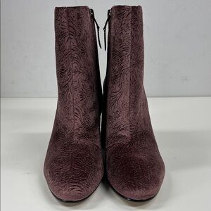 New Sam Edelman Taye Floral Velvet Ankle Booties in Burgundy Size 7