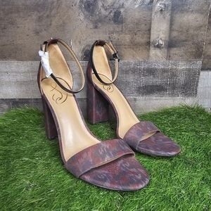 New Sam Edelman Yaro Brick Leather Block Heel Sandals