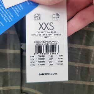 New Samsoe Samsoe Jetta checked long sleeves short dress XXS