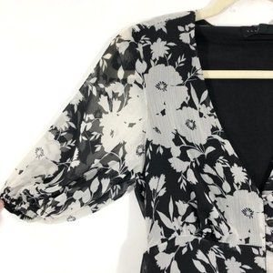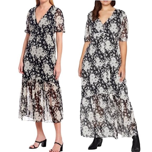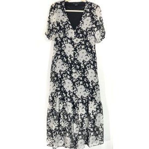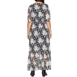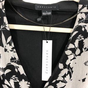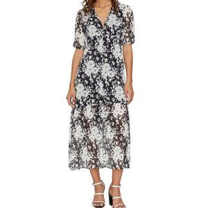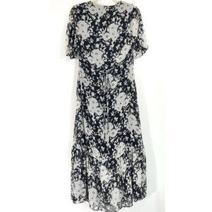 New Sanctuary Floral Short Sleeve Button Front Maxi Dress Black White Size 2