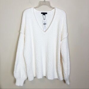 New Sanctuary V-neck Teddy Sweater in Milk Plus Size 2X