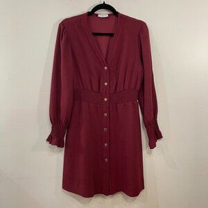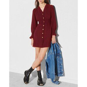 New Sandro Lylie Button-Front Mini Dress Bordeaux 42, 10 $295