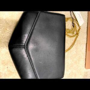 New Sandro One Size Leather Crossbody Bag Black Gold Chain