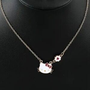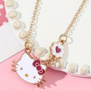 Hello Kitty Sanrio gold tone necklace with pink bow and chain included