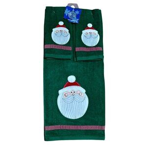 New Santa Bath & Hand Towel Set Green Red Trim Christmas Holiday Decor Kmart VTG