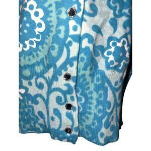 The New Sarah Spencer Sweater in size 2X is a stylish and versatile turquoise cotton nylon 3/4 sleeve cardigan perfect for various occasions such as travel, weddings, parties, casual outings, and business events. This crew neck cardigan features a classic cardigan style with a paisley pattern, button accents, and a tight-knit fabric that offers a comfortable and stretchy fit. Easy to care for with its machine washable design, this lightweight sweater is a must-have for any fashionista looking to add a classy and shimmering piece to their wardrobe.