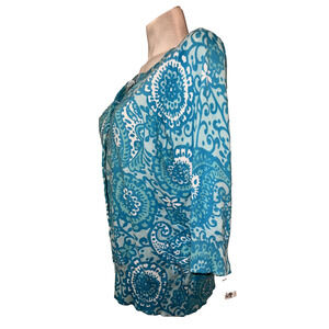 New Sarah Spencer Sweater Plus 2X Turquoise Cotton Nylon 3/4 Sleeve Cardigan