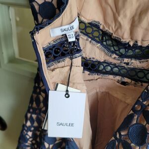New size 8 Sau Lee lace fit & flare sleeveless scoopneck dress in navy