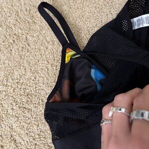 Mesh: 79% Nylon, 21% Elastane; Body: 75% Polyester, 25% Elastane; Lining: 88% Polyester, 12% Elastane